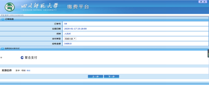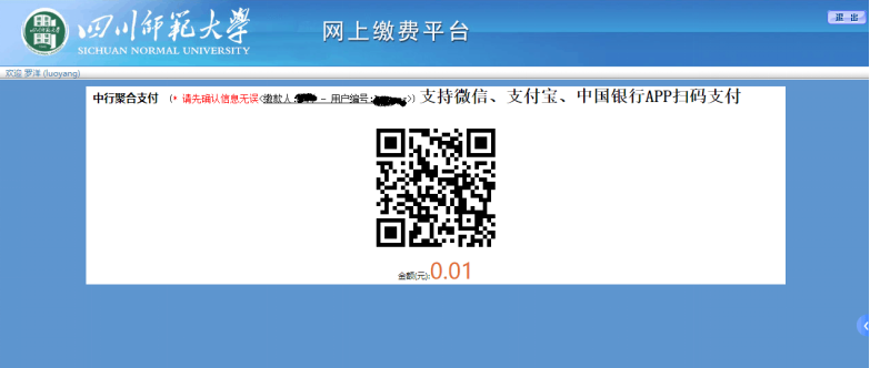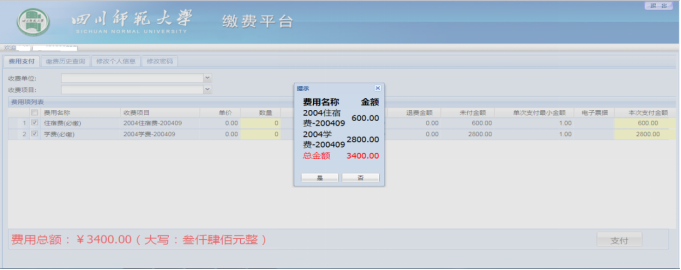 按钮进行缴费(助学贷款学生可根据贷款金额对学费和住宿费进行部分缴费,交费时可在“本次支付金额”中输入贷款不足部分金额);